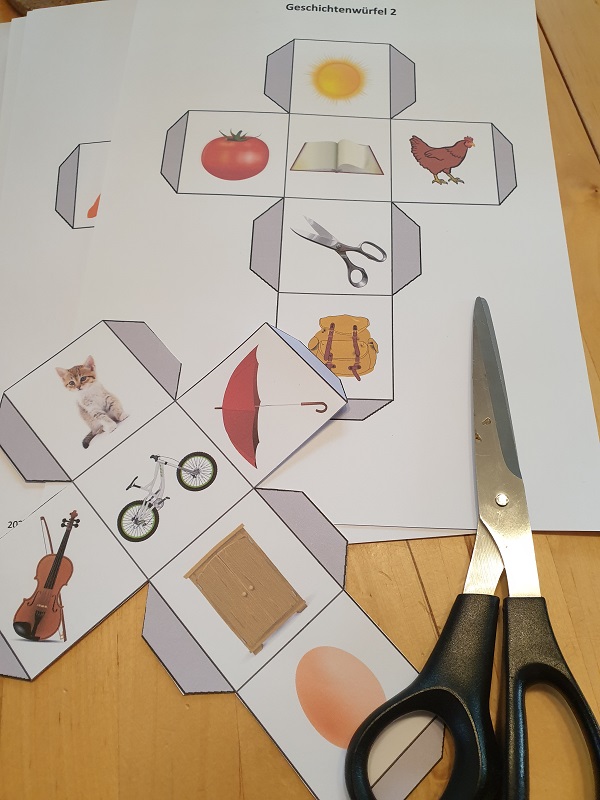 Du brauchst nur den richtigen Ideenbooster. Eine einfache Variante sind meine Story Cubes, die du sofort ausdrucken und zusammenkleben kannst. Die gibt es in verschiedenen Varianten, auch passend zu den Jahreszeiten.