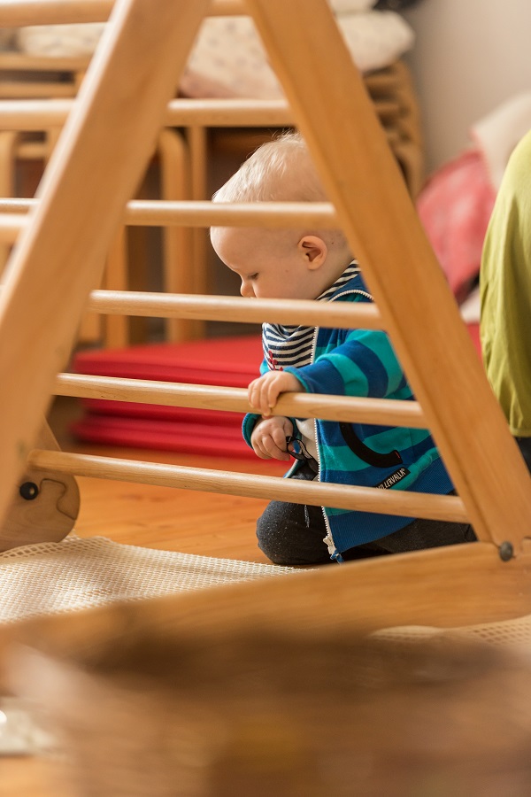 Der Pikler-SpielRaum ist eine Eltern-Kind-Gruppe für Kinder von 0-3 Jahren in der fünf bis sieben Kinder in entwicklungshomogenen Gruppen von langjährig ausgebildeten Pikler®-Pädagoginnen beim selbstständigen Entdecken begleitet werden. (Lies hier mehr darüber)