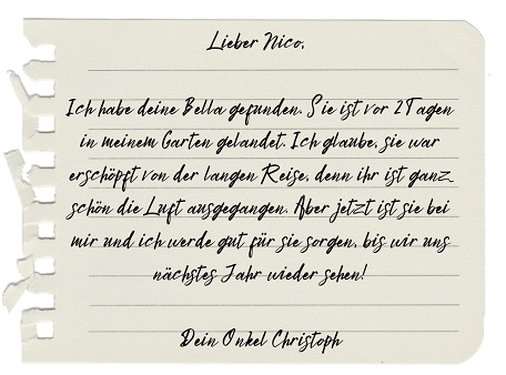 „Na dann. Auf Wiedersehen, liebe Rosa. Es hat mich sehr gefreut, dich kennenzulernen! Vielleicht sehen wir uns ja bald wieder?“