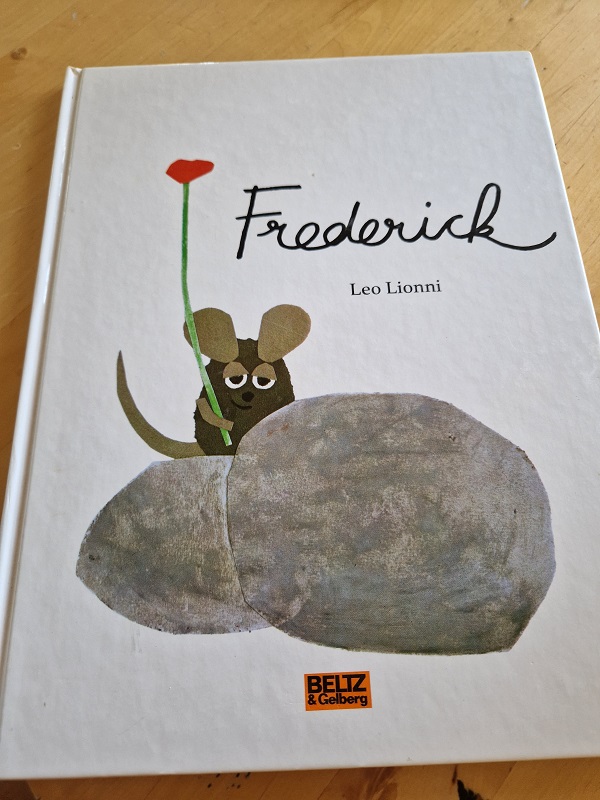Und so hebt der Großvater die Truhe an den Schiebestangen wieder hoch und schiebt sie weiter. Die Scheibtruhe jammert nicht mehr. Sie gurgelt und schnurrt und gurrt: