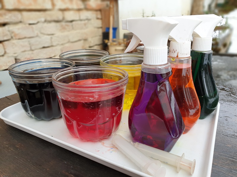 „Also eine Pumpe hab´ ich hier und Lack – hmm, mal schauen.“ Er sieht sich in der Garage um, öffnet hier eine Lade, schaut dort in eine Schachtel. „Ah, hier hab ich was! Grün, was sagst du dazu?“ „Na, grün ist doch wunderbar, passt super gut zum Frühling!“