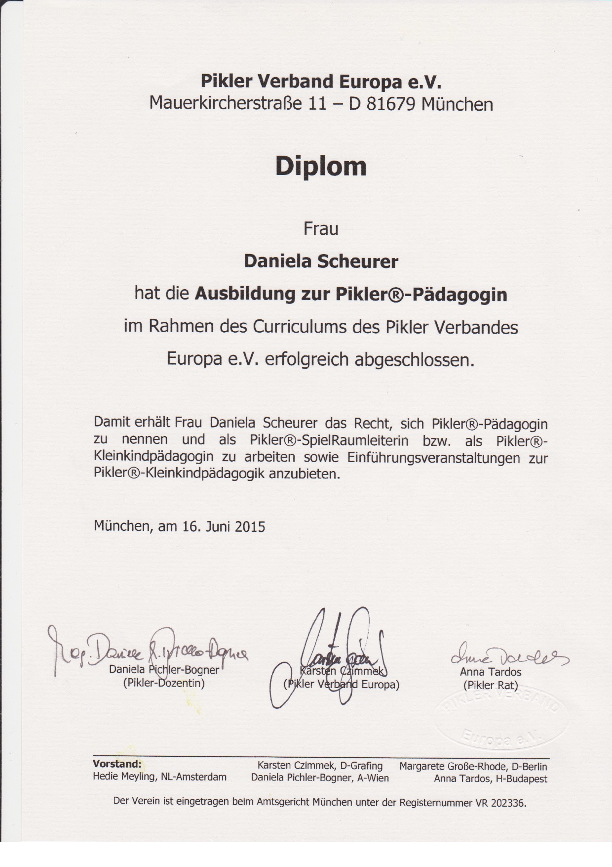 Im Laufe der Jahre habe ich 5 Seminare in Budapest besucht, nach der dreijährigen Fortbildung noch 2 Jahre Praxisbegleitung mitgemacht, und sogar schon einen Kurs für graduierte Pikler-Pädagoginnen besucht.